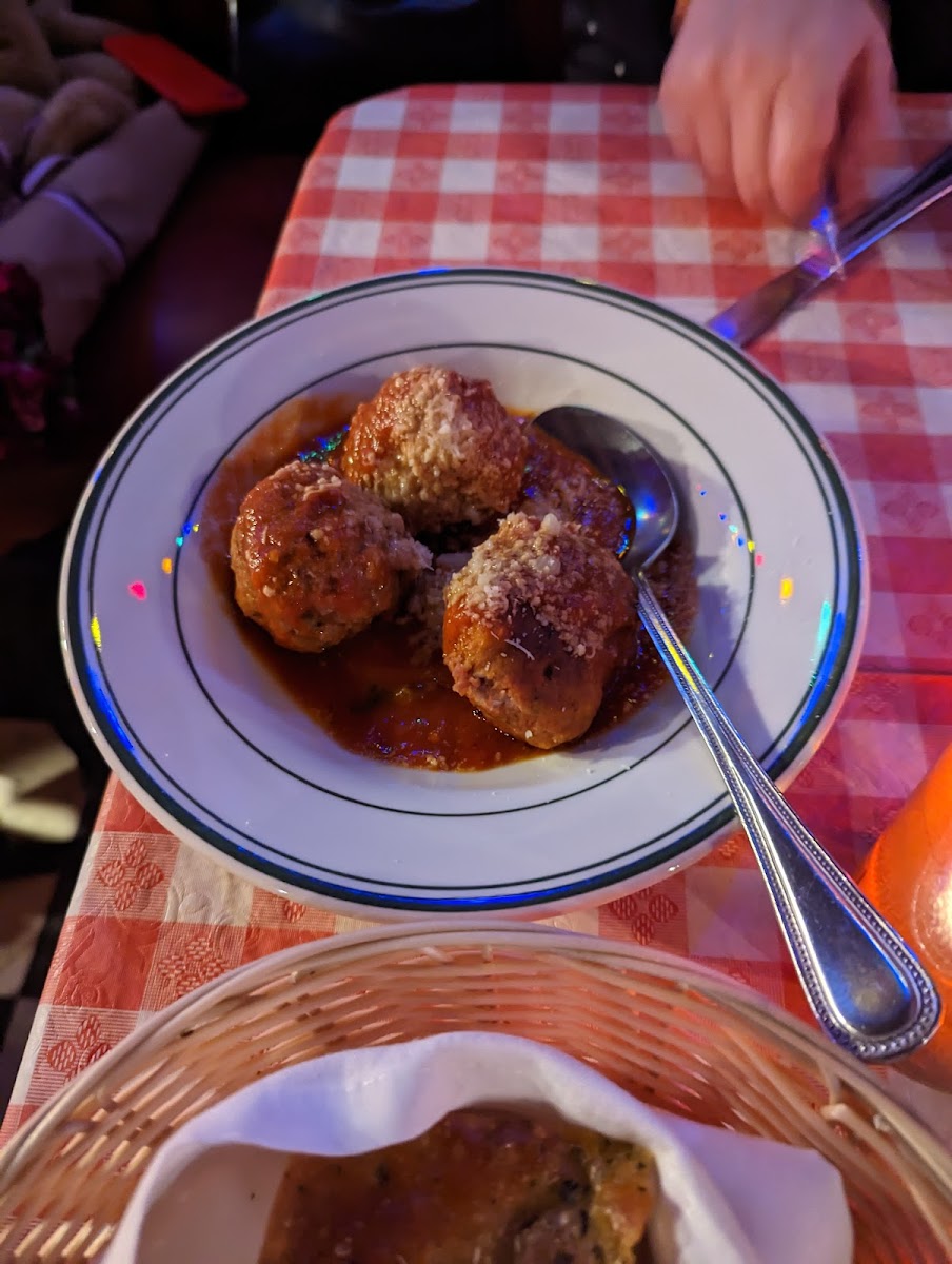 Their meatballs deserve their own spotlight. They’re large, tender, and clearly house-made. I once asked a server about the preparation process, and she explained they blend beef and pork, soak fresh breadcrumbs in milk for moisture, and bake them before finishing in sauce. That two-step method helps maintain structure while keeping the interior soft-a technique widely recommended by culinary schools like the Culinary Institute of America. It’s a small detail, but it shows attention to craft.