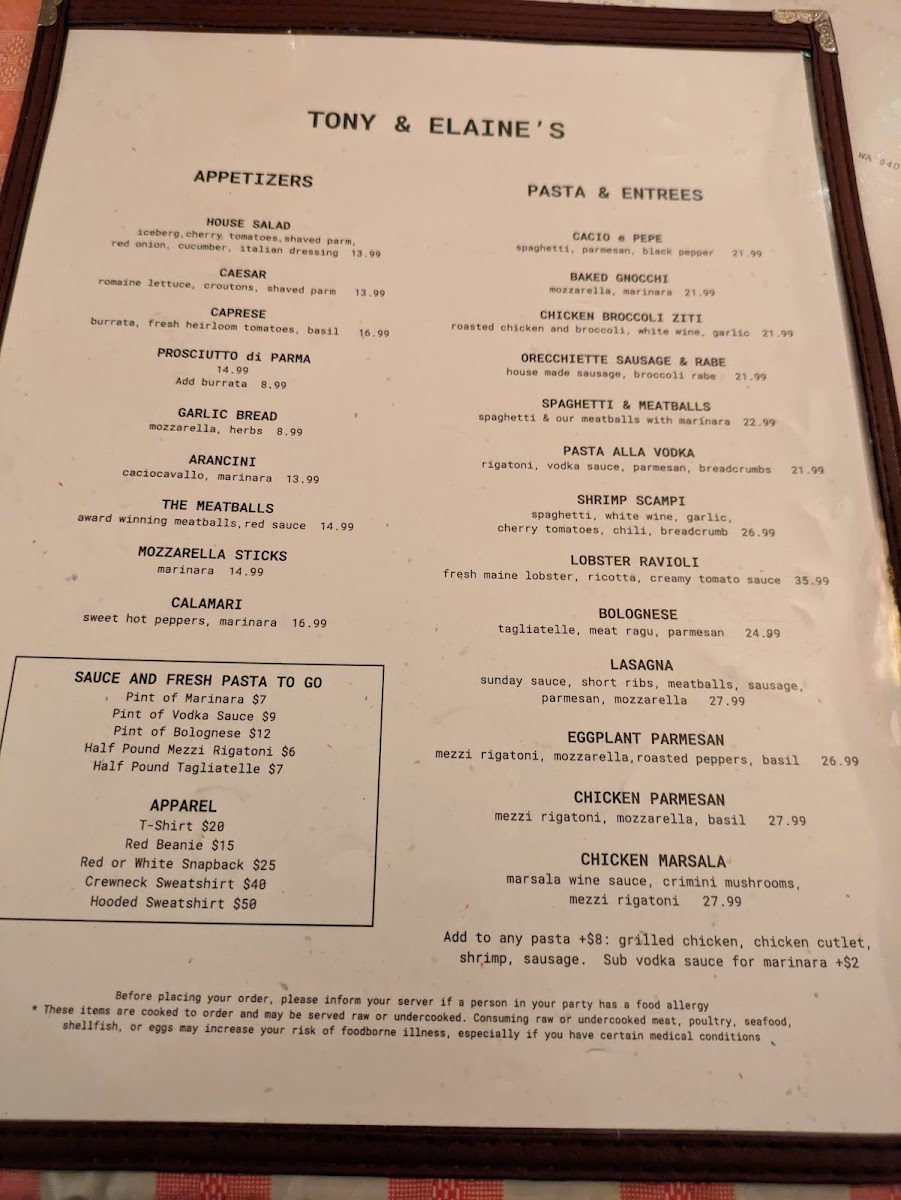 At Tony & Elaine's Menu, you'll discover a delightful variety of dishes crafted with fresh ingredients and a touch of culinary love. Located in the heart of Boston, this cozy spot on 111 N Washington St is perfect for anyone seeking a comforting meal in a relaxed atmosphere. Whether you're in the mood for a hearty breakfast, a delicious lunch, or a satisfying dinner, the menu offers something to please every palate. From savory classics to unique twists on traditional favorites, each dish is prepared with care and served with a warm smile. The vibrant flavors and inviting ambiance make it an ideal place to enjoy a meal with family, friends, or even a solo visit.